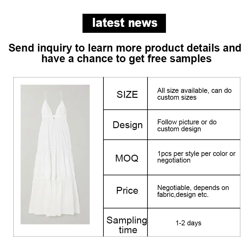 Trajnostno in dihajoči dizajn: Ta elegantna večplastna obleka brez vratu je narejena iz 100% posteljnine, kar zagotavlja dihanje in trajnostno oblačilo, ki je kot nalašč za vsakdanje življenje. The anti-static and anti-wrinkle features make it a practical choice for any woman.Customization Options: Available in a variety of customizable colors and sizes, this dress can be tailored to fit your unique style and preferences.High-Quality Materials: With a fabric weight of 100 grams, this dress is made from high-quality linen that is both durable and comfortable to wear.Support for Sample Orders: We offer a 7-day sample order lead time, making it Enostaven za naročanje vzorca in osebno si ogledati obleko, preden naročite večje naročilo.Coperativno cene: Kot neposredno tovarniško in trgovsko podjetje ponujamo konkurenčne cene in storitve OEM/ODM, zaradi česar je privlačna možnost za podjetja in posameznike, ki želijo kupiti v velikem obsegu.