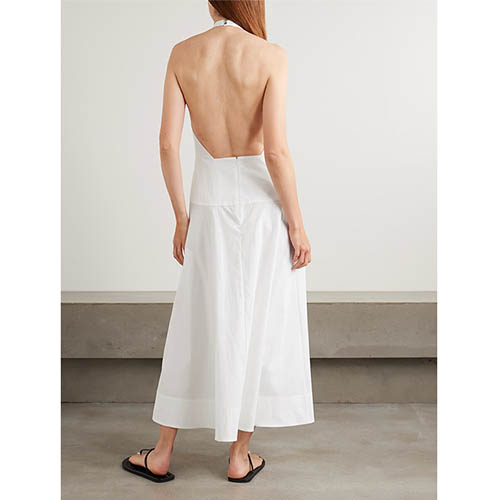 🌿 Zakaj je ta bela maksi obleka s povodcem brez hrbta nepogrešljiva za vaše poletje